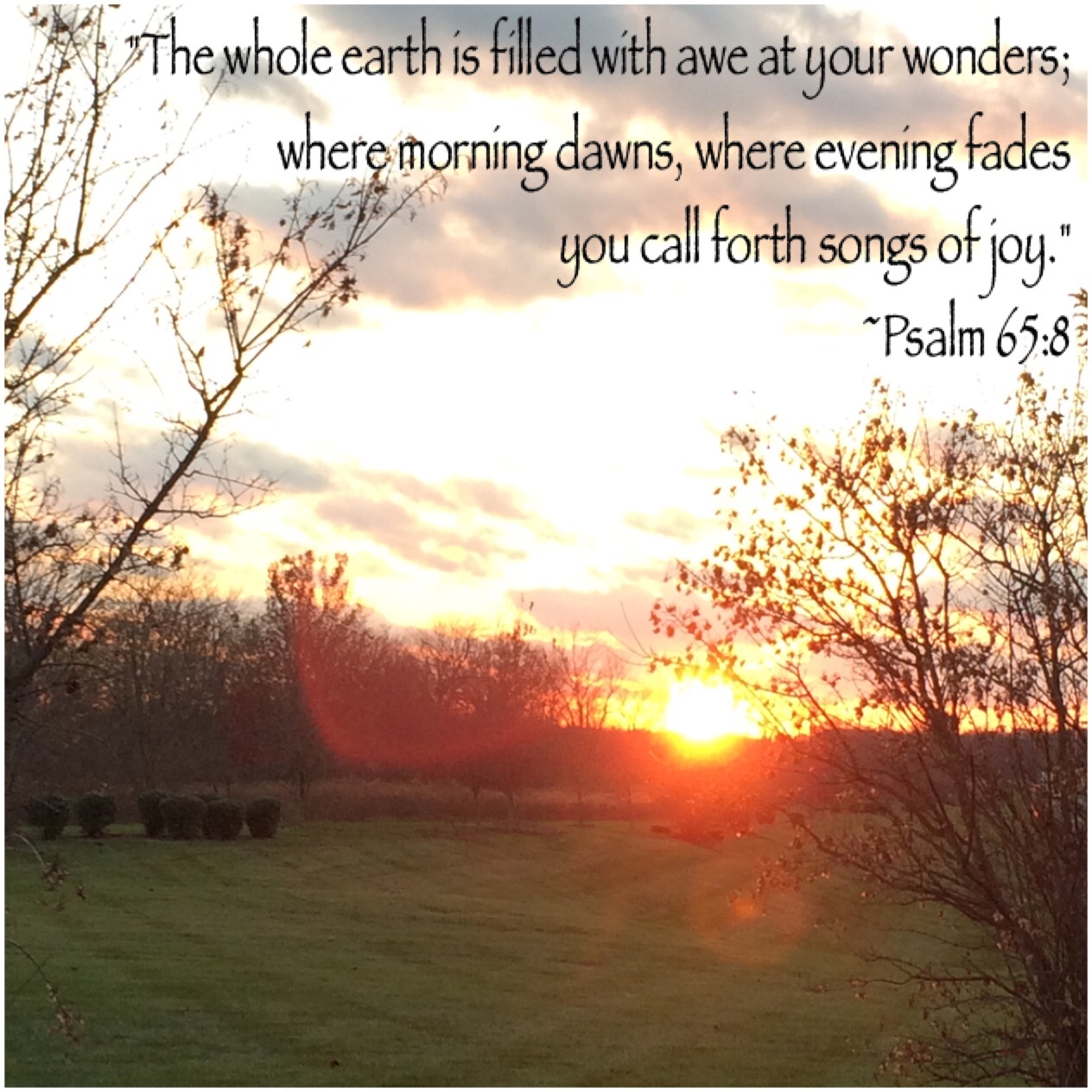 Psalm 65:8 Click to email a link to a friend (Opens in new window) Email Click to share on Facebook (Opens in new window) Facebook Like Loading...