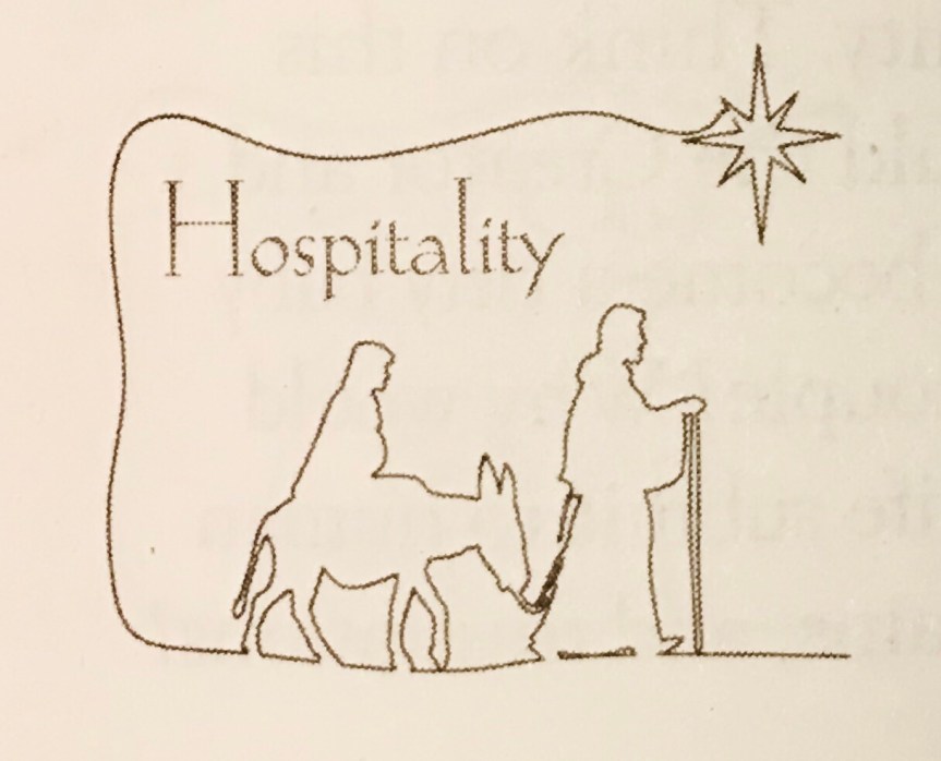 In today’s text, we read the familiar part of “no room in the inn” for Mary and Joseph. In fact, the writer of the pamphlet, Sue Mink explains in great detail the kind of place where Jesus was born. She also explains the great hospitality of a stranger taking them in. A complete stranger offer Mary and Joseph the only space they had available, an out building used for animals. Throughout Jesus’ ministry he often referred to hospitality and of the “welcoming” of people we don’t know. Acts of kindness, do not require us to know the person, their background or their circumstances…it costs nothing to smile and say hello, it costs nothing to listen to someone’s response to, “how are you?” Often taking the time to simply notice a person’s existence can turn a person’s life around. We all want to be noticed and not taken for granted. When was the last time you held a door open for someone or made eye contact? It’s easy to rush through a door,mm not thinking of the next person coming or going, it’s easy to look away when someone looks lost or confused, or simply out of place…these action speak to what kind of hearts and spirits we have. From the very beginning of Jesus’ life in the human form, He relied on the hospitality of strangers everywhere He traveled. And, jumping to the end of his life here on earth, a stranger offered a proper resting place. The greatest commandment is to “Love one another!” I believe hospitality it very near the top as well. Do you have room for Jesus in your life? Jesus has not only offered us a place to spend eternity, he’s designed a mansion specifically just for you!