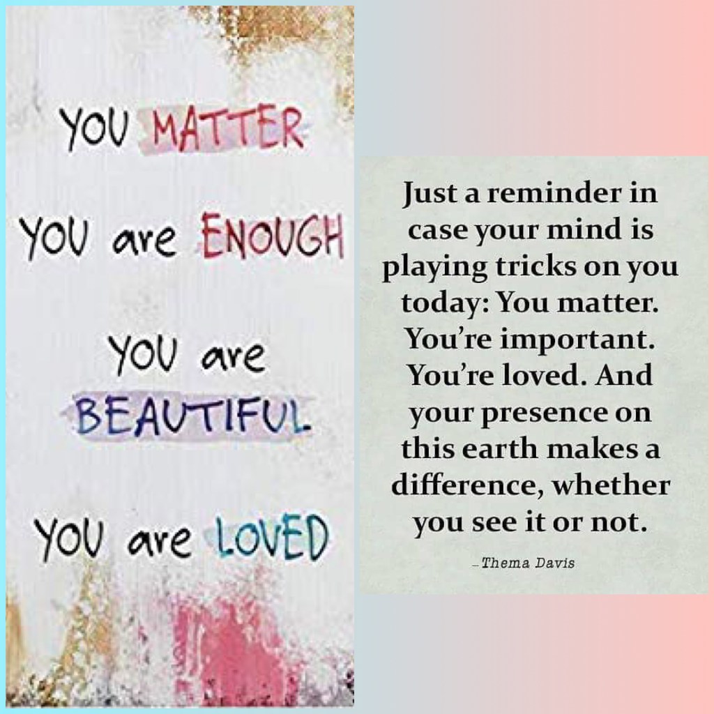 As I come to the each of this post, I pray for you. You have touched my life in ways that I may never be able to tell you or show you. Know that YOU matter and that YOU are loved!