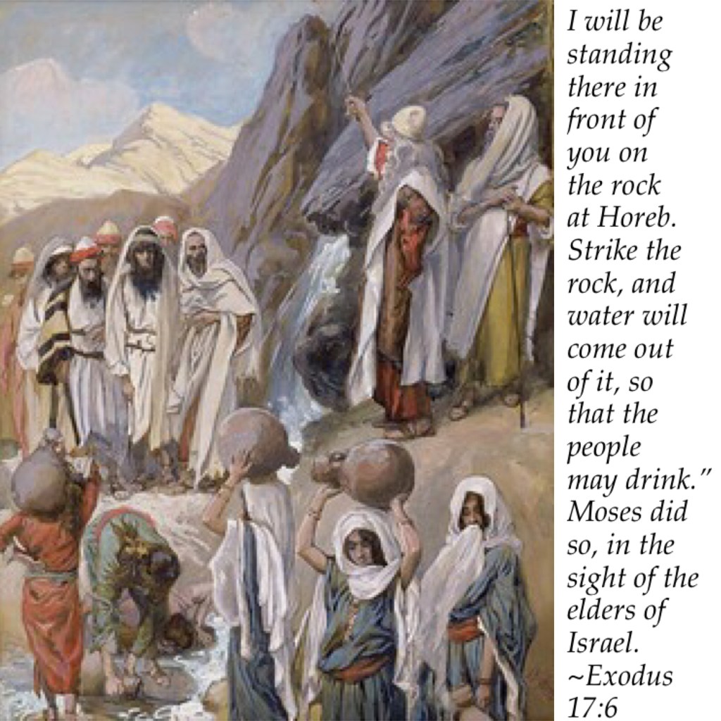 “But the people thirsted there for water; and the people complained against Moses and said, “Why did you bring us out of Egypt, to kill us and our children and livestock with thirst?” So Moses cried out to the Lord, “What shall I do with this people? They are almost ready to stone me.” The Lord said to Moses, “Go on ahead of the people, and take some of the elders of Israel with you; take in your hand the staff with which you struck the Nile, and go. I will be standing there in front of you on the rock at Horeb. Strike the rock, and water will come out of it, so that the people may drink.” Moses did so, in the sight of the elders of Israel.