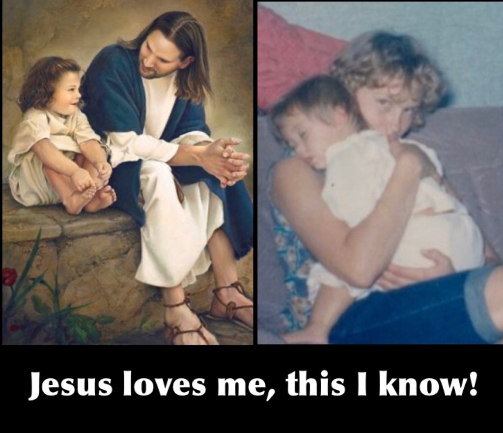 I simply must include one of my favorite photos I found online a few years ago. Every time I see it, I can’t help but see me in the photo with Jesus. It also reminds me of a real photo of me in my moms arms as a child. Mothers are gifts from God.
