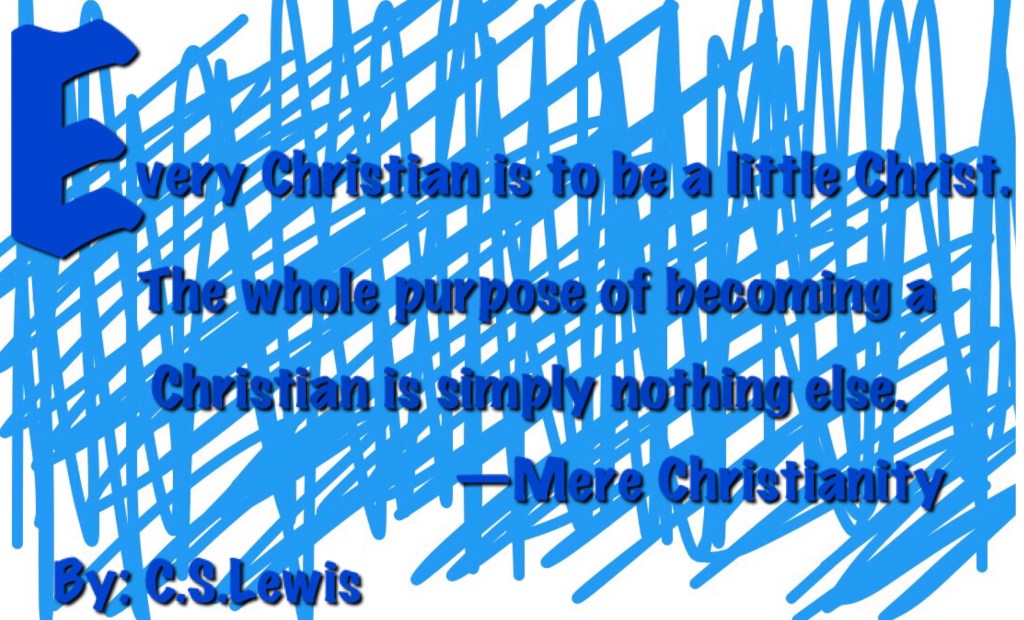 “Now the whole offer which Christianity makes is this: that we can, if we let God have His way, come to share in the life of Christ. If we do, we shall then be sharing a life which was begotten, not made, which always existed and always will exist. Christ is the Son of God. If we share in this kind of life we also shall be sons of God. We shall love the Father as He does and the Holy Ghost will arise in us. He came to this world and became a man in order to spread to other men the kind of life He has — by what I call “good infection.” Every Christian is to become a little Christ. The whole purpose of becoming a Christian is simply nothing else.”