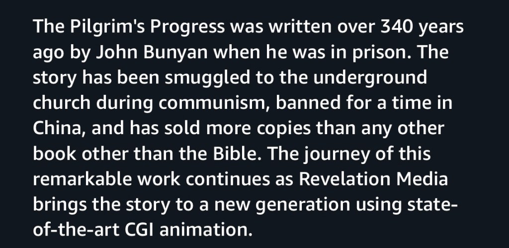 Hey I recently watched, “The Pilgrim’s Progress.” Check it out now on Prime Video! It touched my heart and soul and could not keep this treasure to myself. Also, check out Paul Bunyan.