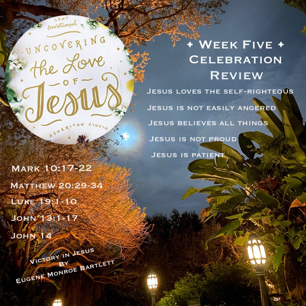 So, did you have a favorite Bible reading from week five? They are all important as they teach us about Jesus, His ministry and His love. I loved reading all of them but the story of Jesus and Zacchaeus is special because of the memories it stirred in me. It took me back to when I was a child and learning the song about Zacchaeus. Drawing and coloring pictures of Zacchaeus in a sycamore tree. I remember learning about him in Sunday school class and vacation Bible school. Remembering precious memories of my Sunday school teacher (Birdie) came to life in my mind, such fond and beautiful memories.