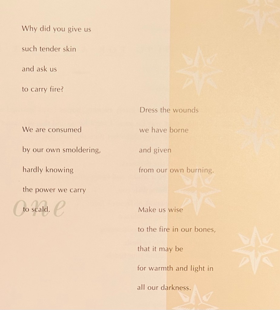 The title was taken from Jan Richardson’s book, “Night Visions – searching the shadows of advent and christmas.”