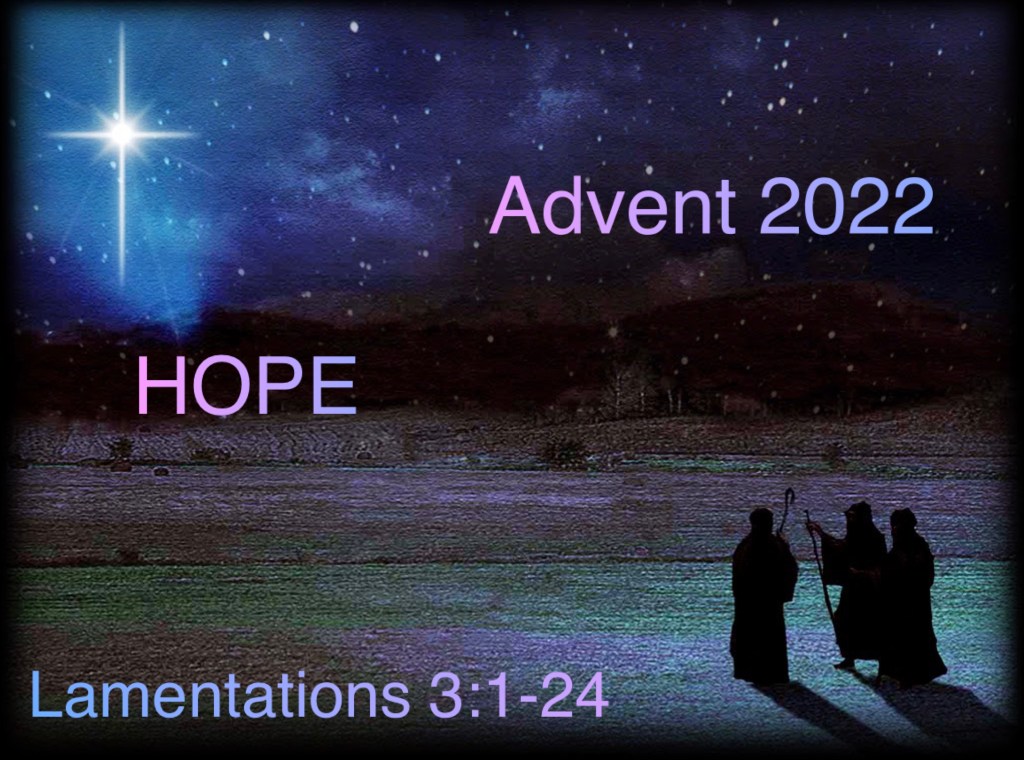 “I am one who has seen affliction under the rod of God’s wrath; he has driven and brought me into darkness without any light; against me alone he turns his hand,again and again, all day long. He has made my flesh and my skin waste away, and broken my bones; he has besieged and enveloped me with bitterness and tribulation; he has made me sit in darkness like the dead of long ago. He has walled me about so that I cannot escape; he has put heavy chains on me; though I call and cry for help, he shuts out my prayer; he has blocked my ways with hewn stones, he has made my paths crooked. He is a bear lying in wait for me, a lion in hiding; he led me off my way and tore me to pieces; he has made me desolate; he bent his bow and set meas a mark for his arrow. He shot into my vitals the arrows of his quiver; I have become the laughingstock of all my people, the object of their taunt-songs all day long. He has filled me with bitterness, he has sated me with wormwood. He has made my teeth grind on gravel, and made me cower in ashes; my soul is bereft of peace; I have forgotten what happiness is; so I say, “Gone is my glory,and all that I had hoped for from the Lord.” The thought of my affliction and my homelessness is wormwood and gall! My soul continually thinks of it and is bowed down within me. But this I call to mind, and therefore I have hope: The steadfast love of the Lord never ceases, his mercies never come to an end; they are new every morning; great is your faithfulness. “The Lord is my portion,” says my soul,“therefore I will hope in him.”